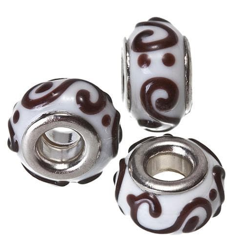 A unique handmade lampwork piece showing a delicate floral design around a silver roundel. Can be used in a multitude of projects, each piece exhibits unique craftsmanship. All lampwork pieces are handmade, sizes and color may slightly vary.