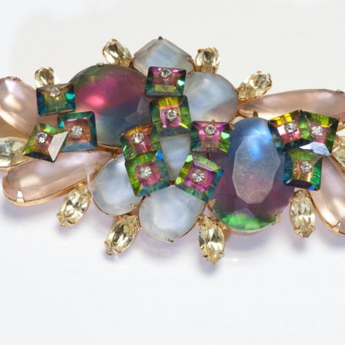 Antique Reverse Crystal Platinum Gold Ruby Sapphire Diamond Dog Brooch