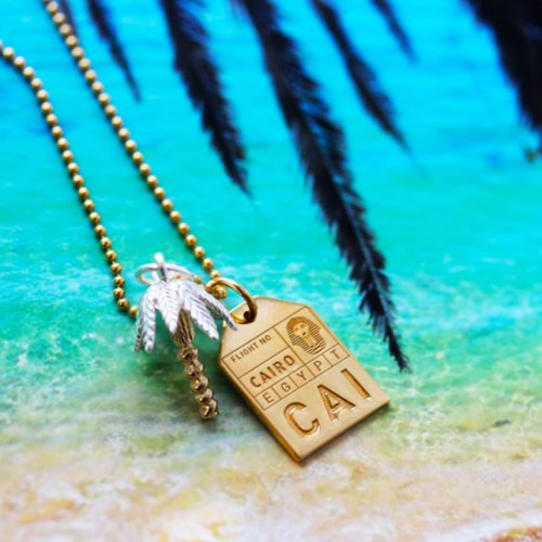 This gold vermeil Cairo charm features Cairo’s airport code, CAI. Start with a dawn camel ride to the majestic Giza pyramids, share tea and a hookah with locals, admire King Tut’s treasures, then take to the Nile for a moonlit felucca ride. There are millennia of history to contemplate in this still-pivotal world capital.