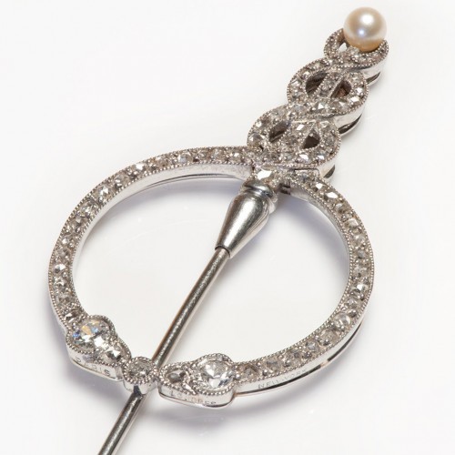 Cartier Diamond and Pearl Stick Pin in Platinum