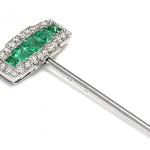 Art Deco Cartier Emerald and Diamond Stick Pin