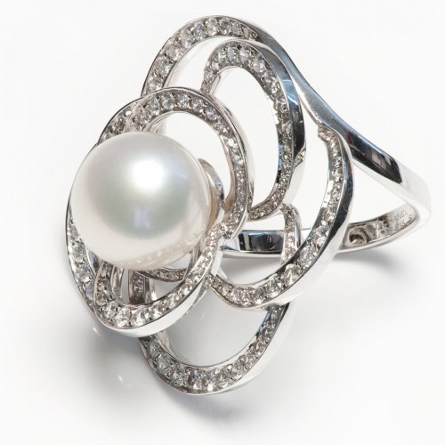 Chanel 18K Gold Pearl Diamond Fil de Camelia Ring