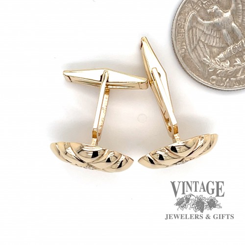 Checkered pattern 14ky gold and diamond oval cuff links