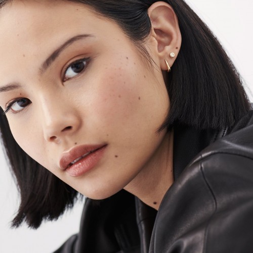 Make a subtle statement. These chunky huggies really hug the ear lobe – everyday earrings you’ll never take off. Truly versatile, style them with your favorite standout hoops or let them shine on their own.