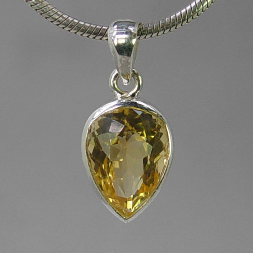 Citrine 6.5 ct Faceted Pear Bezel Set Sterling Silver Pendant