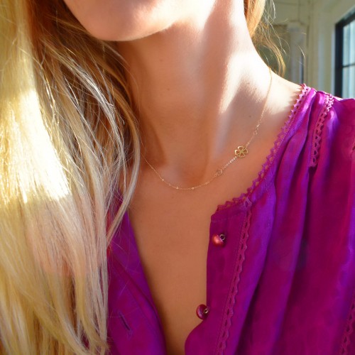 Clover & Petite 2 Birthstone Necklace in 14k Gold