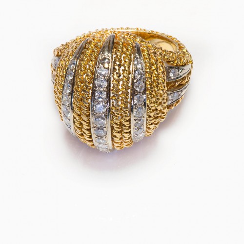 Vintage circa 1960 twisted 18K yellow gold and diamond dome ring by Corletto. Signed 18K Italy, Corletto. Size 7. Ring can be sized.