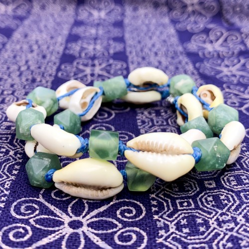 - Cowrie shells, approx 26mm (1 inch) ; Lapis Lazuli 22mm x 10 ; Thulite, 8.5mm