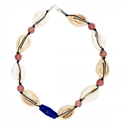 Be the first to review “Cowrie Shell, Lapis Lazuli and Thulite Choker Necklace With Sterling Silver Trigger Clasp” Cancel reply