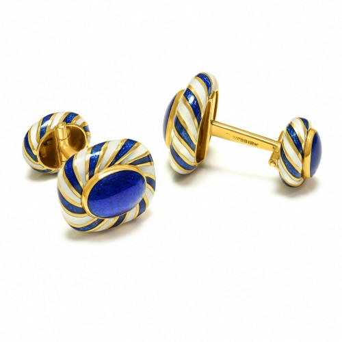 David Webb 18K Gold Blue White Enamel Cufflinks