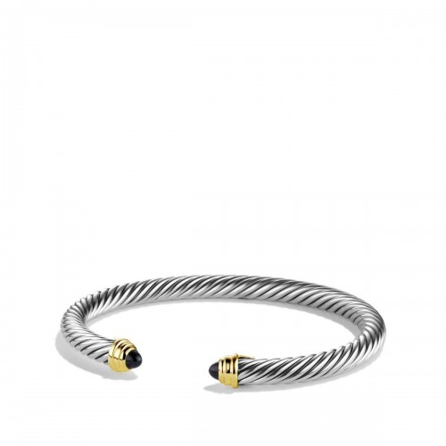 Ladies David Yurman bracelet. Sterling silver and 14 karat yellow gold. 7mm classic cable bracelet with blue topaz tips.