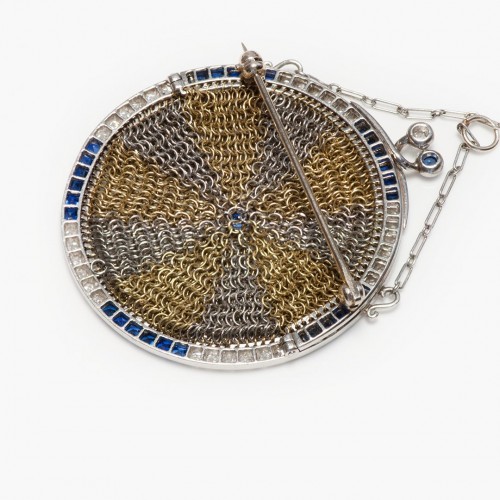 Be the first to review “Delightful Antique Gold Platinum Sapphire Diamond Miniature Mesh Purse Brooch” Cancel reply