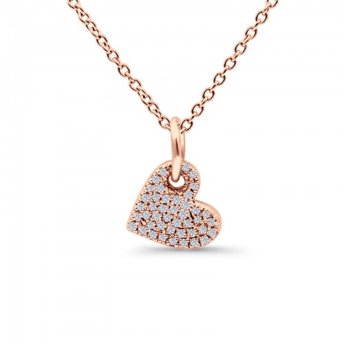Diamond Heart Pendant Necklace – 14K Rose Gold, 0.07ct, 18 Inch Chain