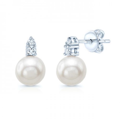 Exclusive 14K White Gold Diamond & Pearl Birthstone Earrings – Stylish Value