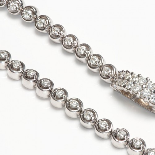 Set with approximately 9 carats of round brilliant cut diamonds, this necklace glows with refined brilliance. Each diamond boasts VS clarity and G–H color, ensuring remarkable sparkle and fire from every angle. A rare treasure for collectors and connoisseurs of fine vintage jewelry.