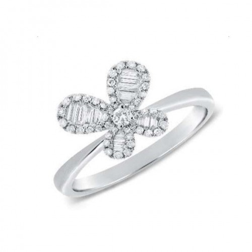 14K rose gold ring with 0.21tcw round brilliant cut diamonds and 0.11tcw baguette cut diamonds