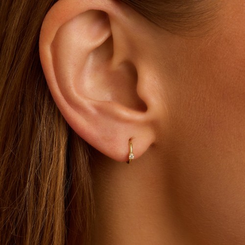 Diamond Solitaire Single Huggie 14k Solid Gold