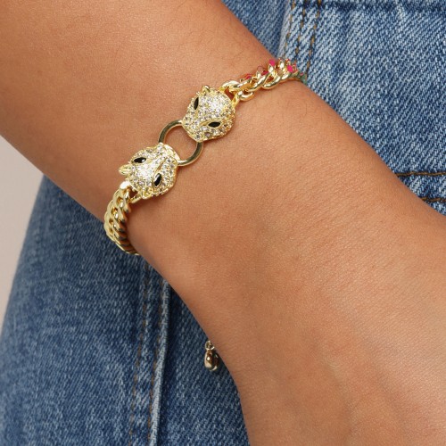 Double Jaguar Cuban Bracelet – Gold|White Diamondettes