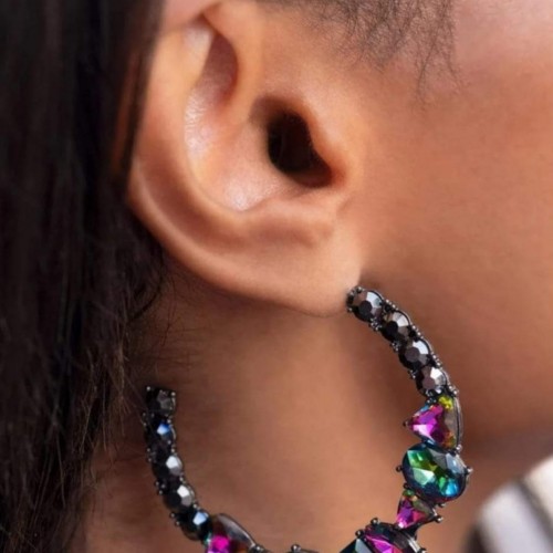 Encased in classic silver pronged fittings, an oversized display of dewy, iridescent, and classic multicolored rhinestones delicately links around the wrist for a dreamy dazzle. Features an adjustable clasp closure.