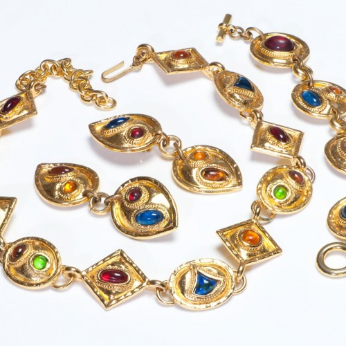 Be the first to review “Edouard Rambaud Paris Blue Red Yellow Cabochon Necklace Earrings Bracelet Set” Cancel reply