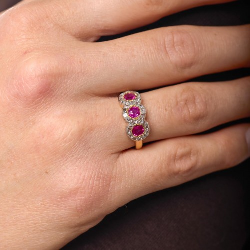 Edwardian Burma no heat ruby and diamond 3 stone ring