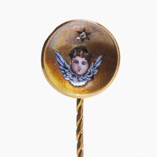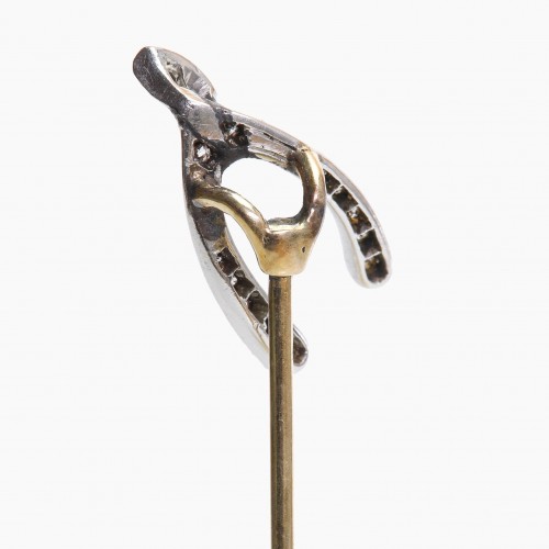 Edwardian Gold Platinum Diamond Wishbone Stick Pin