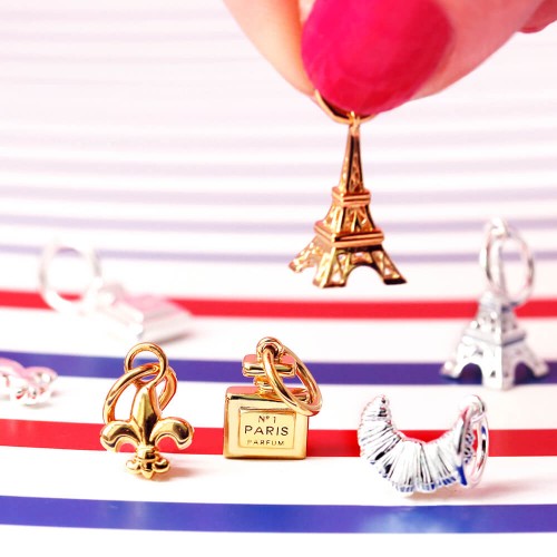 Make your own Eiffel Tower necklace with one of our adjustable chains or instantly attach to the Infinity Link Bracelet.