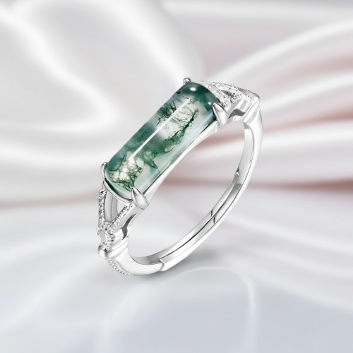 Important Note: Our moss agate stone is a refined tribute to nature’s artistry. Each gemstone is one of a kind, featuring naturally formed green inclusions that create its own distinctive pattern; no two stones are ever alike. Because of this, the moss stone you receive will vary slightly from the photos shown, making it a truly personal and unique piece. Designed with elegant vine and leaf details, this ring symbolizes love, renewal, and individuality, a timeless expression of beauty found only in nature.