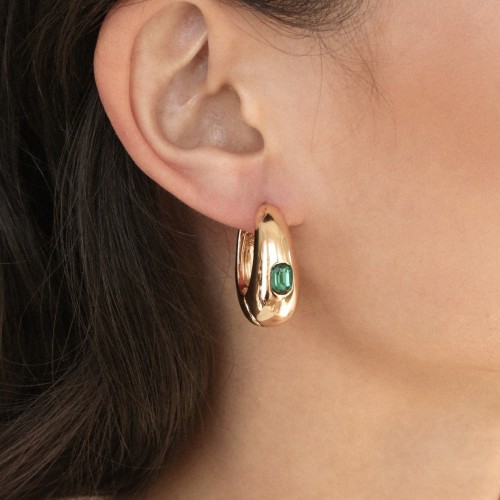 Emerald Deco Hoops Emerald Crystal with 18k Gold Plating One Size