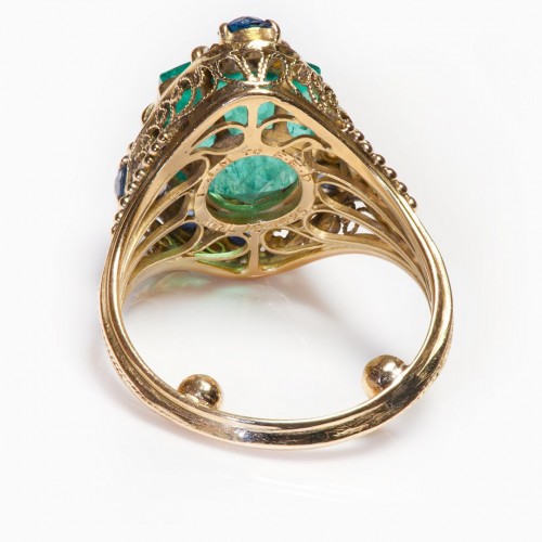 Emerald Sapphire Filigree Gold Ring Attrib. to Louis Comfort Tiffany