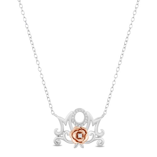 Enchanted Disney Fine Jewelry 10K Rose Gold and Sterling Silver With 1/6 CTTW Diamond Belle”Dozen Roses” Necklace