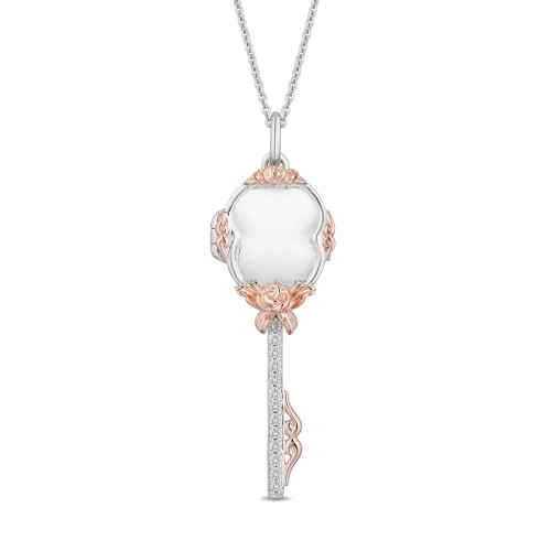 Enchanted Disney Fine Jewelry 10K Rose Gold with 1/20 CTTW Diamond Belle Rose Necklace