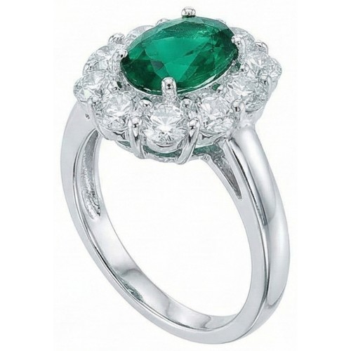 Engagement Ring Oval Cut Green Emerald With Natural Earth Mined Diamond Gold White 14K 6.5 Carats