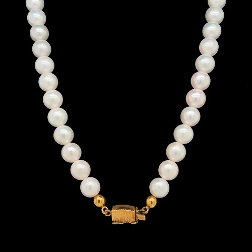 Estate 6.7mm Akoya Cultured Pearl Necklace Yellow Gold – J36737