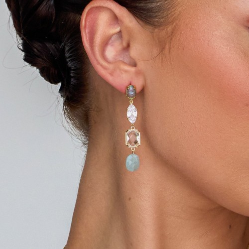 - Materials: .925 Sterling Silver Post, Genuine Aquamarine, Cubic Zirconia, Cracked Blue Glass