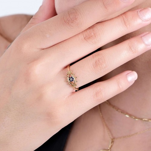 Embrace timeless elegance and protective charm with our 14K Solid Gold Evil Eye Ring. Featuring a sleek 2cm x 1cm design, this minimalist piece is crafted with precision and care to symbolize protection, intuition, and inner strength. More than just a ring, it’s a meaningful statement of love and style—making it the perfect gift to show appreciation for your mother or someone special.