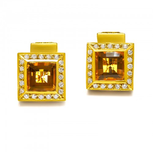 Faceted Citrine 18K Gold & Diamond Cufflinks