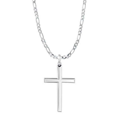 FANCIME Mens Black Highlight Cross 925 Silver Necklace