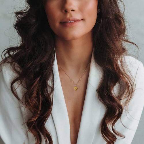 FANCIME “Princess Dream” Yellow Citrine November Square Gemstone Sterling Silver Necklace