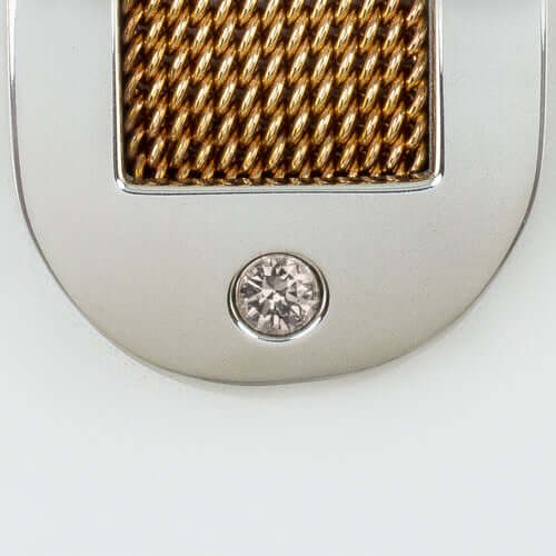Featured here is a beautiful fancy champagne diamond necklace! A single natural, earth-mined diamond is securely burnish set at the bottom of this lovely pendant. The diamond has a charming warmth to it with an alluring champagne color. The sparkle of the diamond helps to conceal any natural internal characteristics which makes this diamond perfect for necklace quality. It will look amazing once worn. The pendant is made from solid stainless steel. The center portion features a lovely chainmail detail that has been plated with rose gold for a wonderful two-tone look! The rose gold detail perfectly complements the fancy champagne diamond. The necklace has a genderless design that can be worn by both men and women. It is being sold as a necklace, including an 18 inch black cord. If a chain is preferred, it may be included upon request. The pendant weighs a substantial 14.8 grams and measures 35.5mm across (north-south), 18.1mm wide (east-west) and 4.2mm from the back of the piece to the front. Make this natural diamond necklace part of your collection! This piece is also being offered with yellow gold detail and white diamonds!
