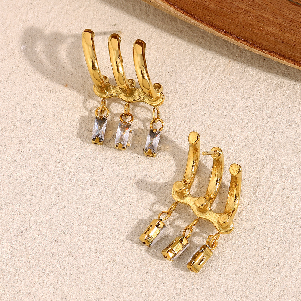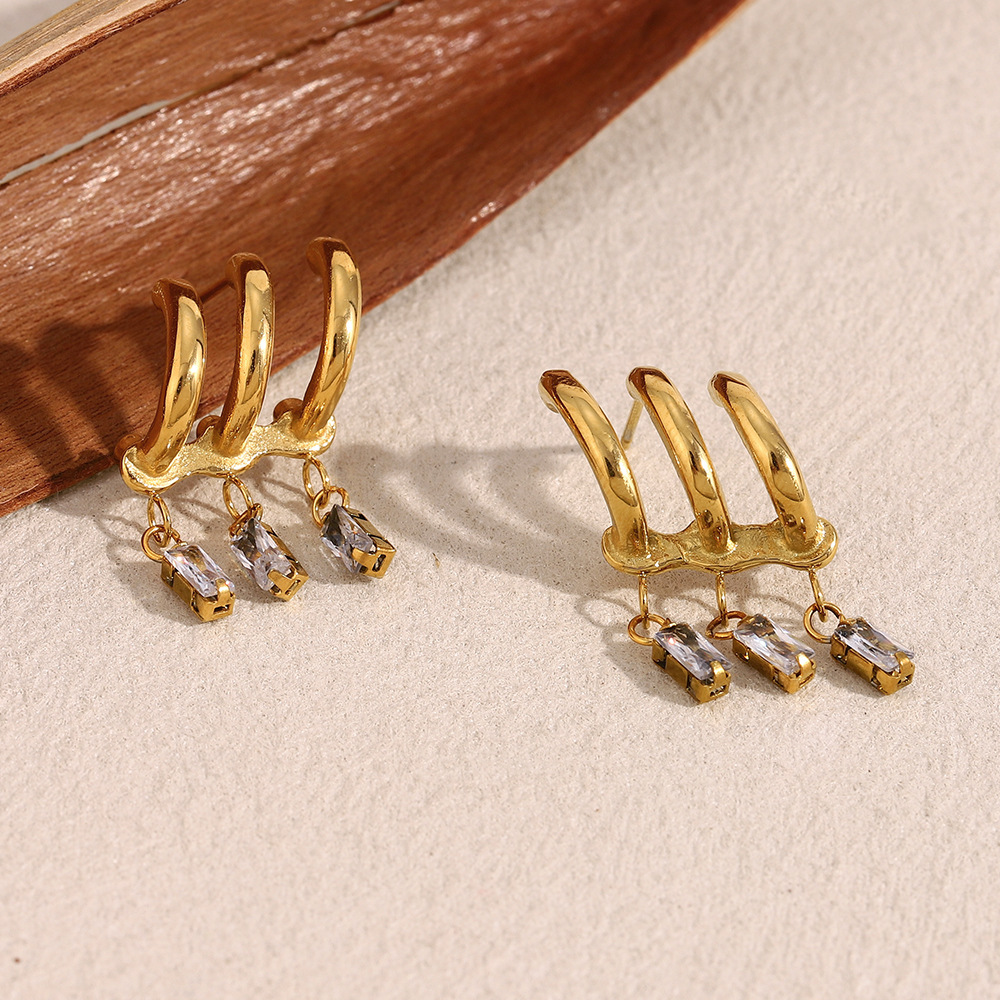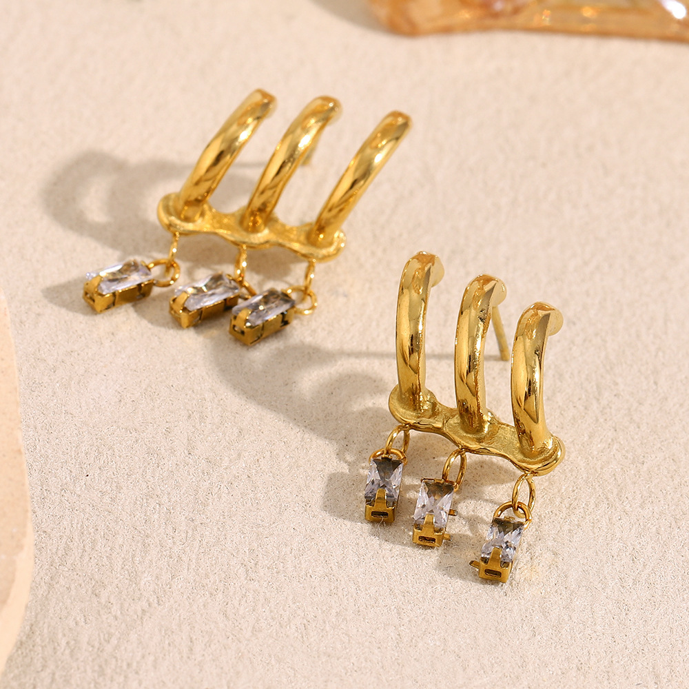Color: fringed Zircon stud earrings-Gold