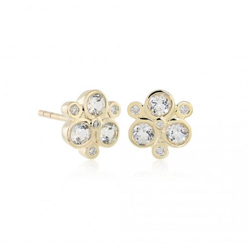 A circle of luminous white opals creates a petal-like formation that feels both delicate and deliberate. Their natural play-of-color brings quiet dimension to this sculptural design.
