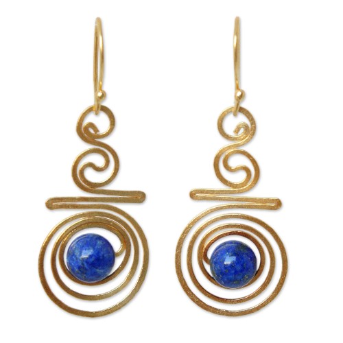 The September birthstone, lapis lazuli, centers the powerful design of these earrings by Khun Boom. The blue gem’s golden sparkles are in elegant harmony with the unique glow of 24k gold plated brass. Features 24k gold plated sterling silver hooks.