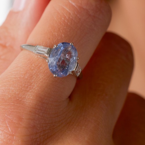 French GIA 2.31 carat no heat sapphire diamond platinum ring