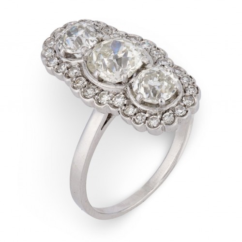 Dramatic, refined, and unmistakably French in spirit, this Mid Century diamond ring is ideal for collectors and connoisseurs who appreciate bold vintage design, antique diamond character, and enduring sophistication.