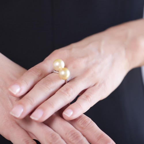 French Mid Century pearl diamond platinum Toi Et Moi ring