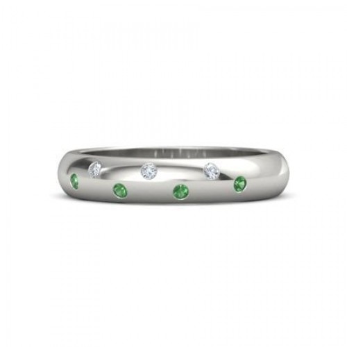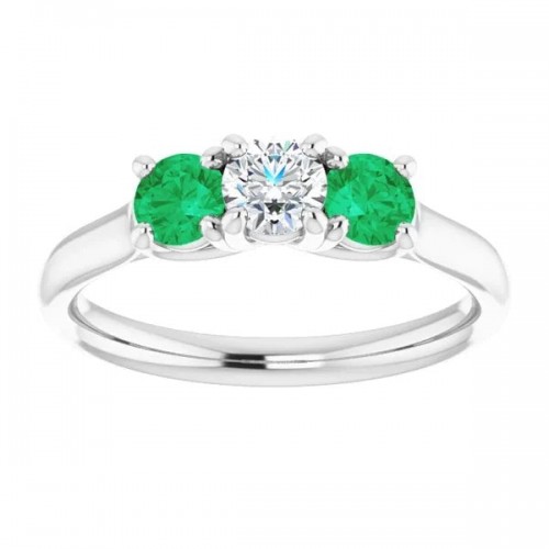 Stone Details : There is one center round diamond approx. 0.80 carats (Approx. Diameter 5.8 mm) and two round Green Emerald stones on the sides approx. 0.80 carats (Approx. Diameter 5.8 mm) each. Natural earth mined stones.