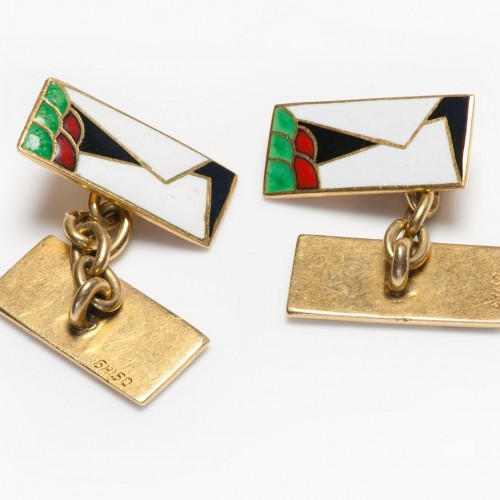 Ghiso Art Deco Gold Geometric Enamel Cufflinks