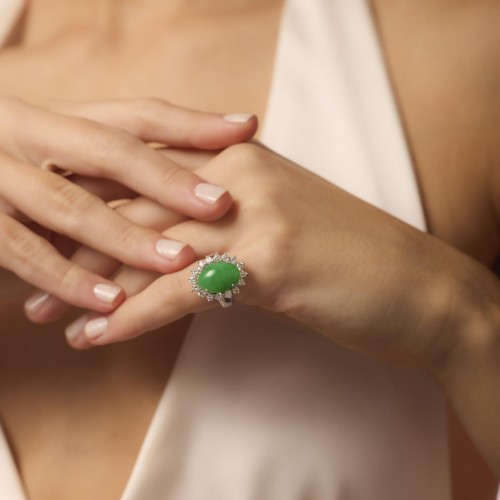 GIA 6.75 carat jade diamond 14k white gold cluster ring