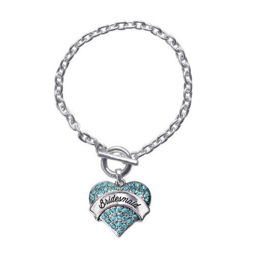 Silver Aqua Sis of the Bride Aqua Pave Heart Charm Toggle Bracelet